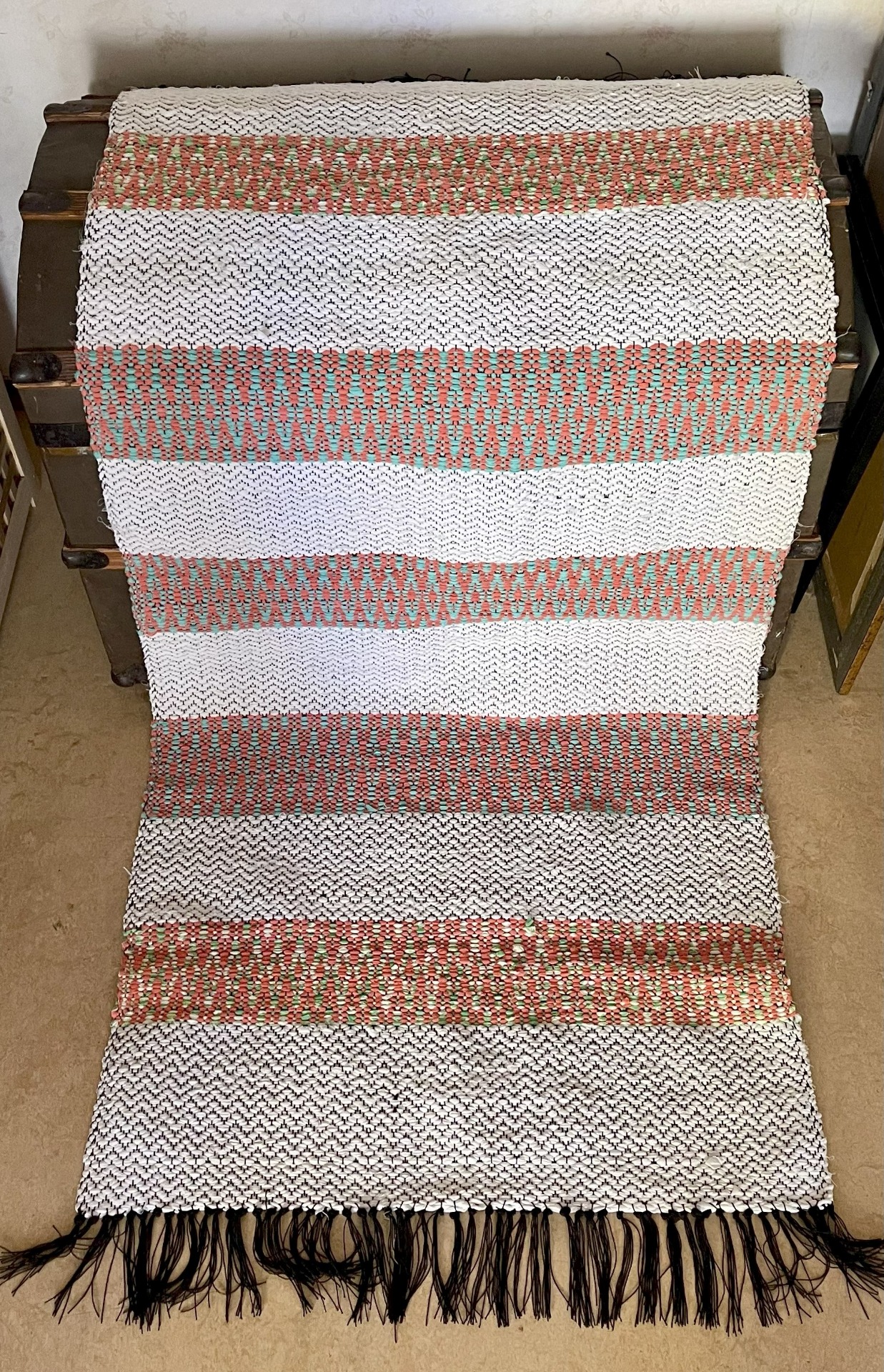 Korgar, väskor flätade i samma teknik som näverslöjd. Återbruk av kaffepåsar. Trasmattor med vävda av mina gamla lakan.